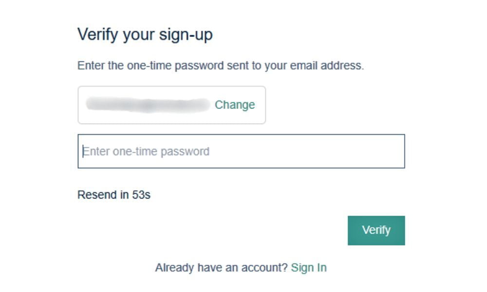 Enter the one-time password sent to your email address and click " Sigh in". You will be Redirected to the Home Page and Continue Shopping.